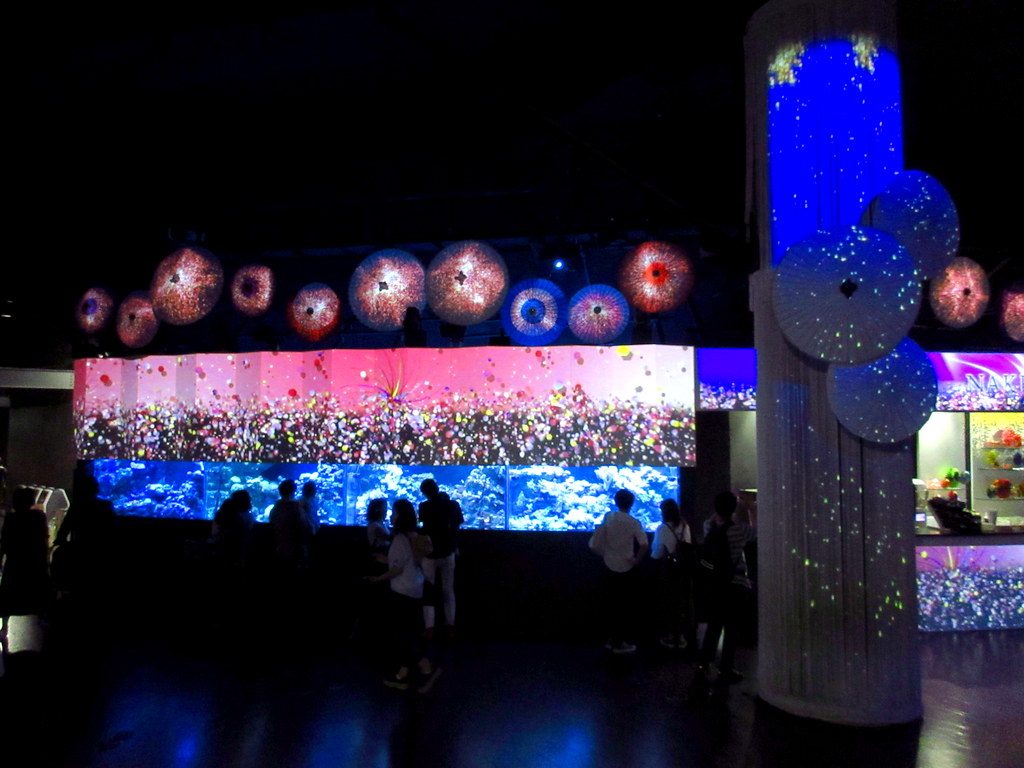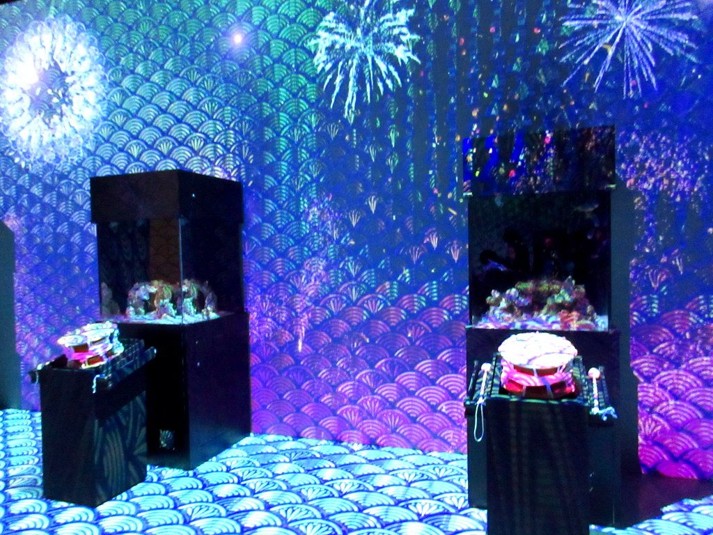 映し出される花火と合わせると、空間自体が芸術作品といった感じで