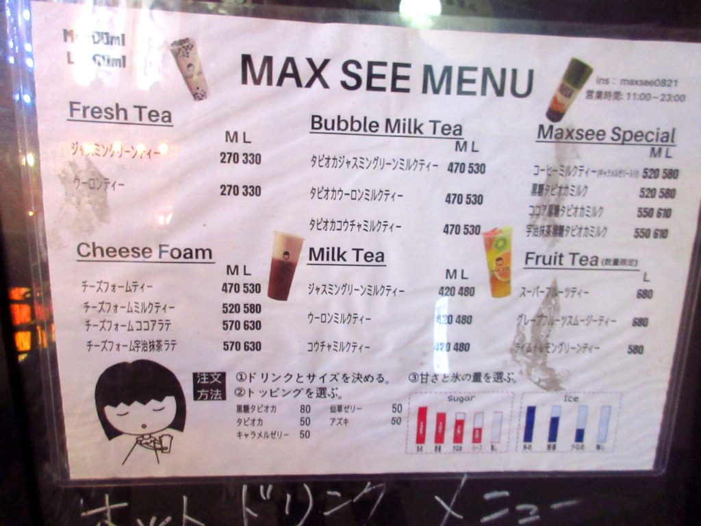 蒲田のMAXSEEタピオカミルクティーのメニューは?