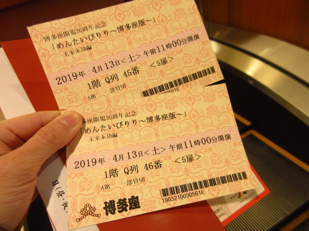 めんたいぴりりの博多の観劇料は税込で以下の通りです。