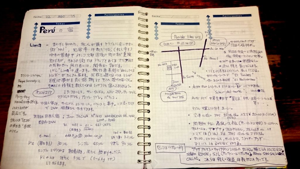 そして、ペルーリマの情報は、せっかく記録していたのに、ちゃんと読み返しておけばよかった。