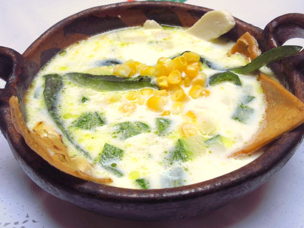 プエブラの、コーンとトルティーヤ、大きなチリ・ポブラノの入ったボリュームあるスープです!