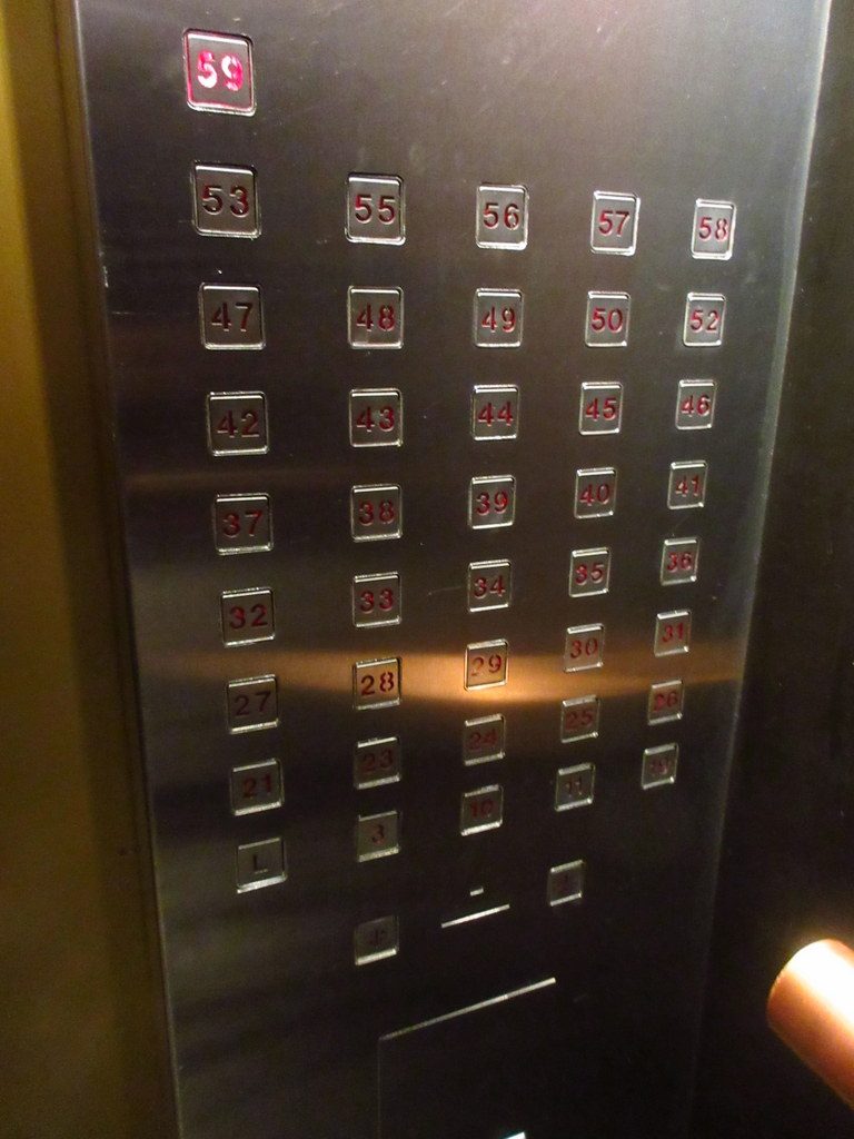 59階まで直通のエレベーターを上がると、服装チェックの人がいるので