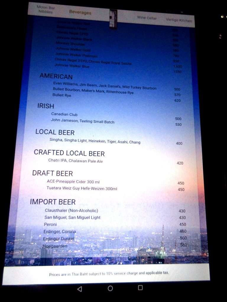 お値段は500バーツ前後の飲み物が多いので、