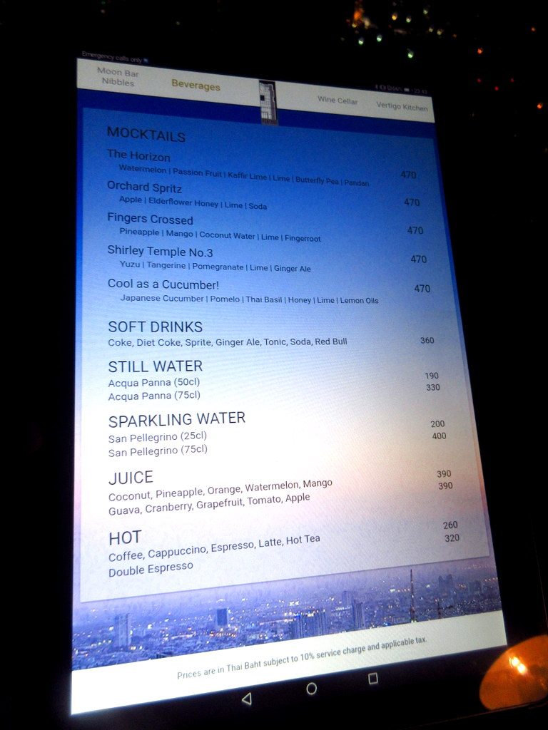 お値段は500バーツ前後の飲み物が多いので、