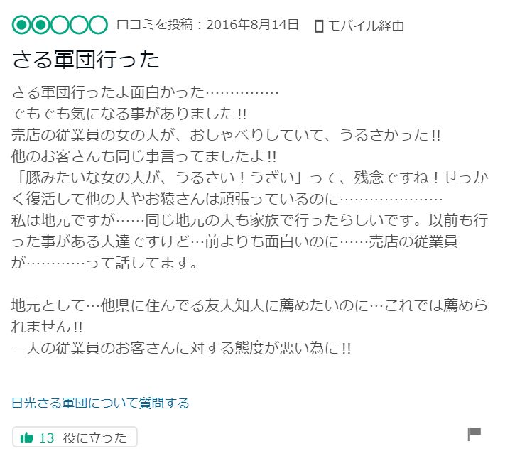 日光さる軍団は最悪とネットにあり不安に。実際は?