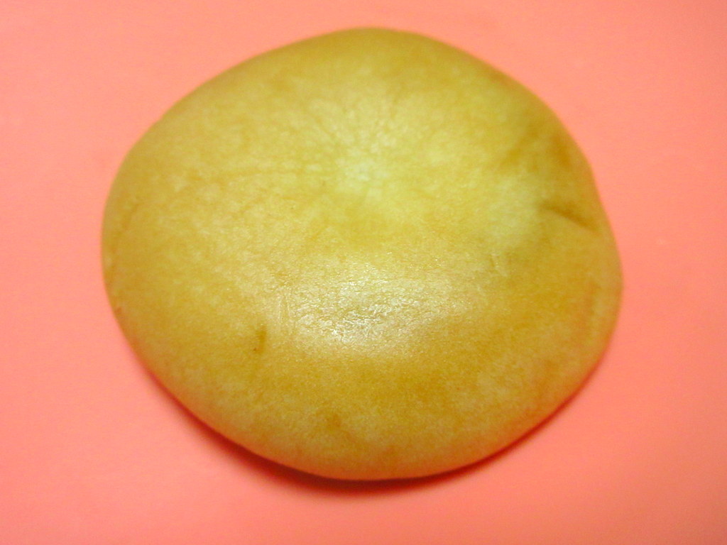 和三盆糖と練乳を練り込んだ生地で包んであります。
