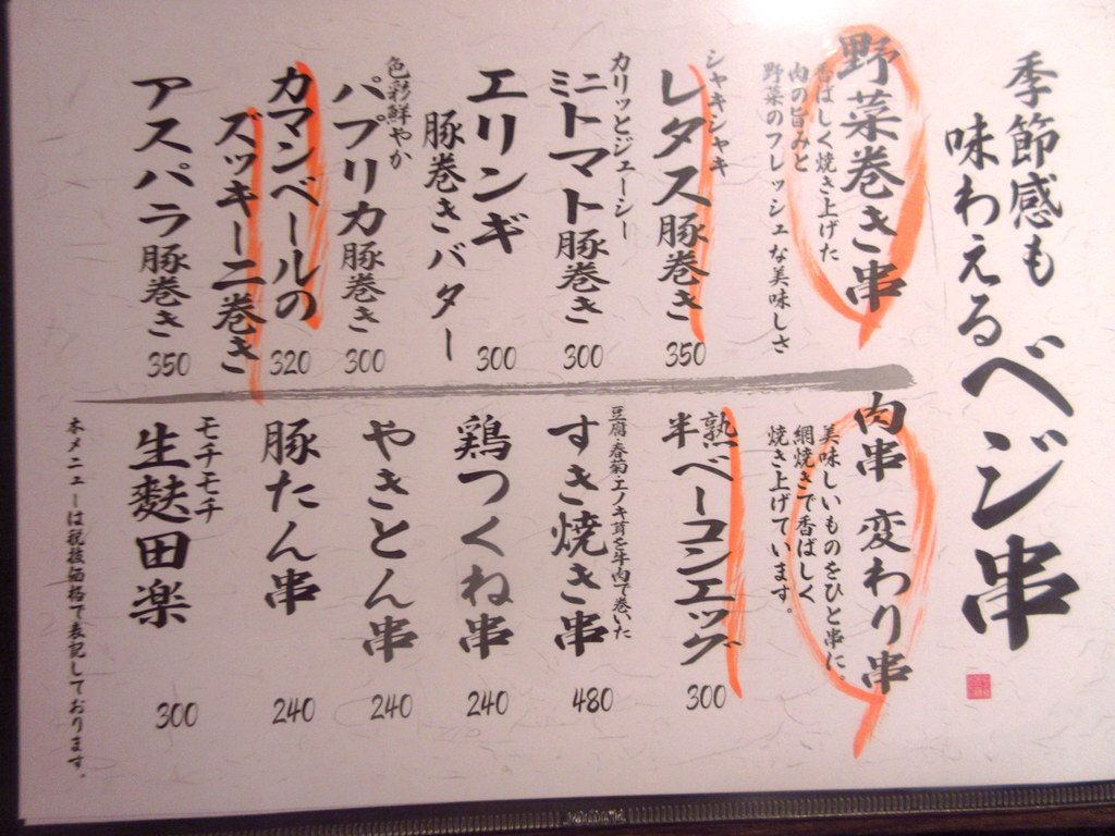ぬる燗佐藤のベジ串、野菜巻き串がヘルシー!