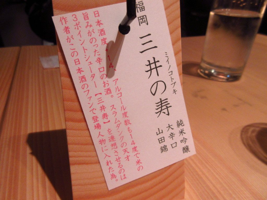 出されたのは三井の寿(みいのことぶき)という日本酒です。