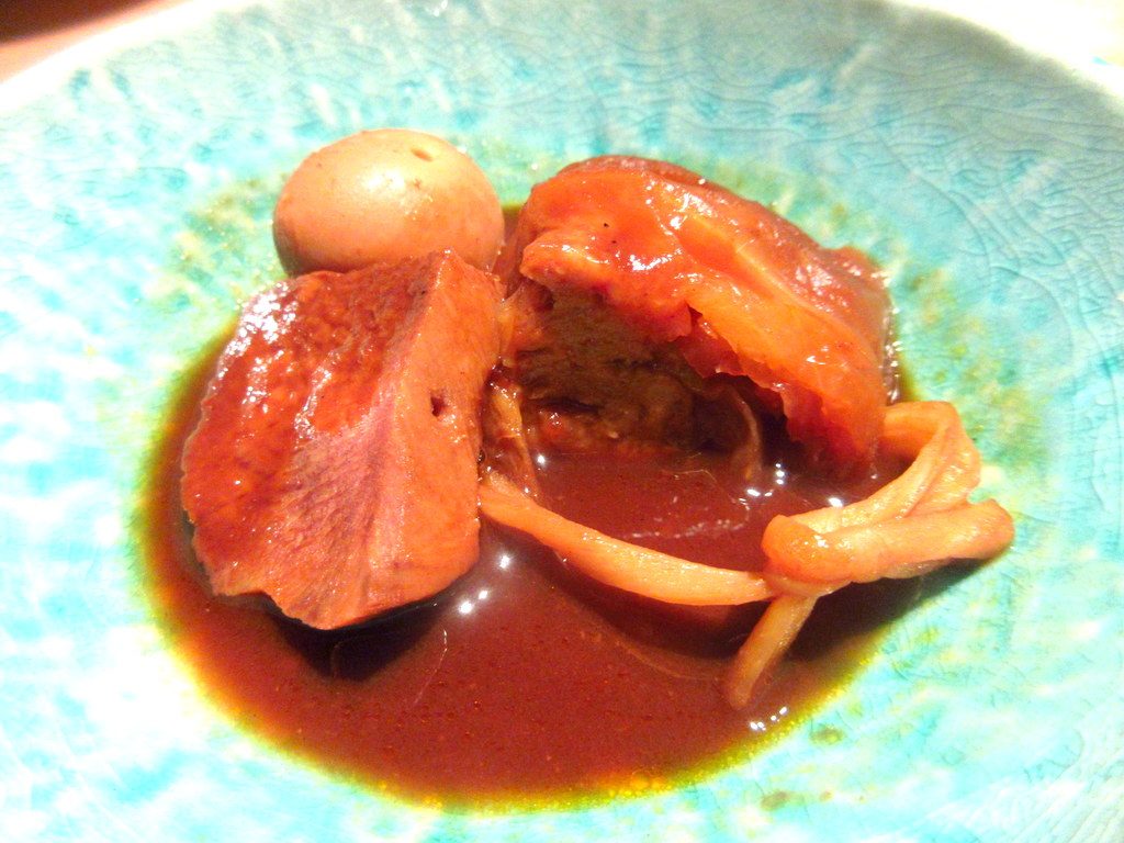 澄みだし汁にデミグラスソースと八丁味噌を合わせた珍しいおでんです。