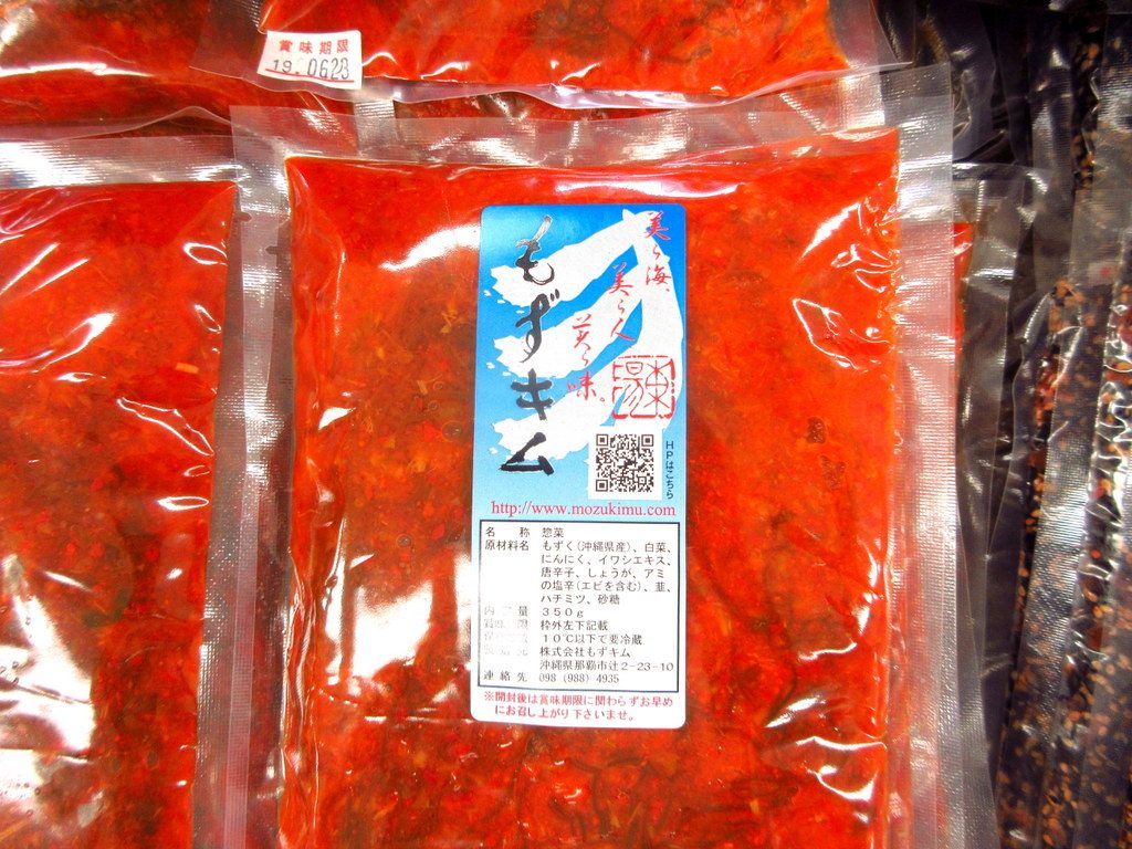これは珍しい、沖縄もずくを本格キムチに漬け込んだお惣菜です。