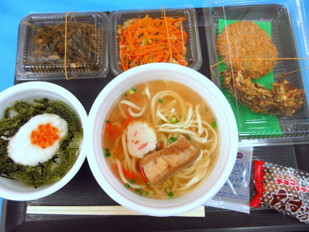 このセットは海ぶどう丼・沖縄そば・もずくコロッケにもずくの天ぷら