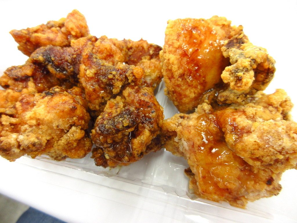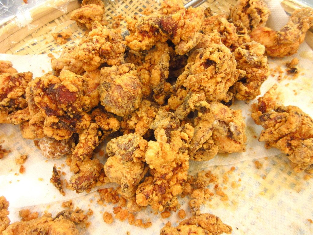 秘伝の唐揚げは沖縄のフルーツを使った自家製のタレを絡めるのですが、