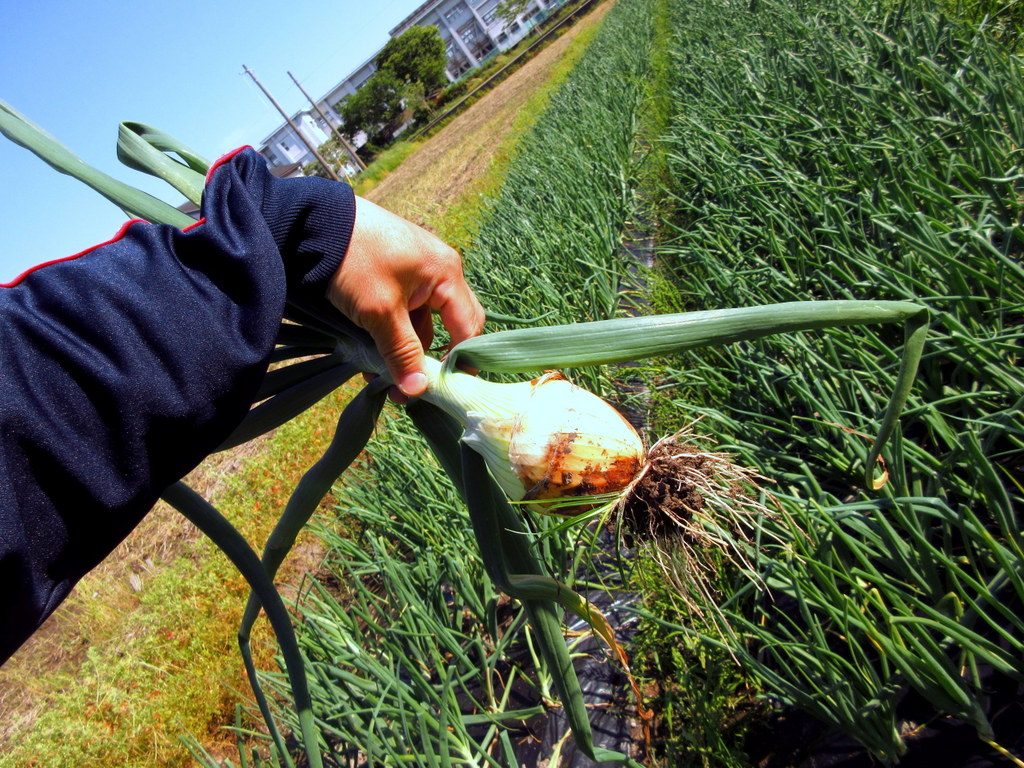 スポッとひっこぬいて、現れる玉ねぎ。感嘆の声が上がります。
