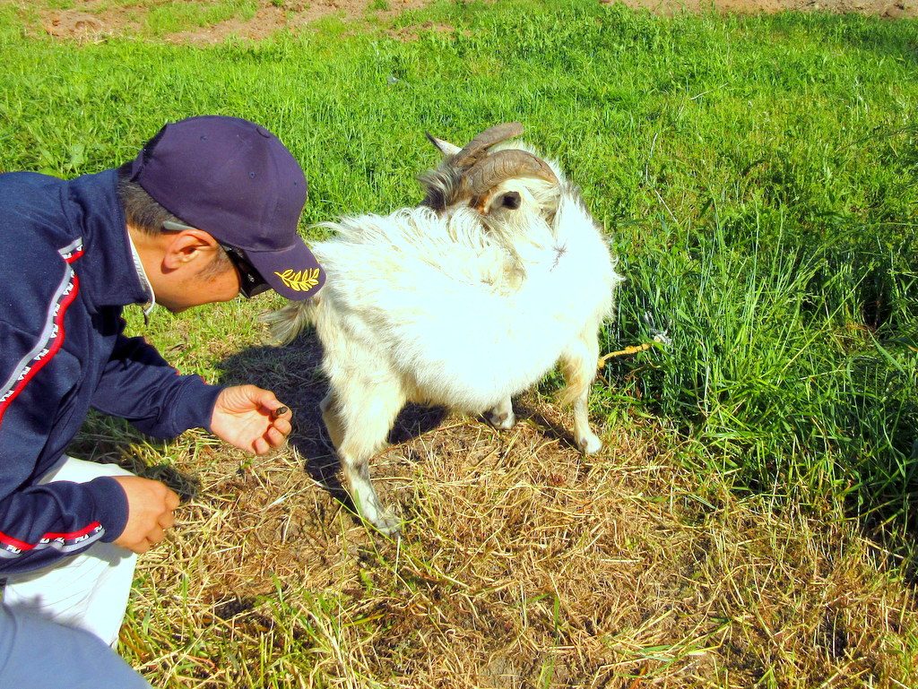 チョさんが可愛がっているのは、ヤギの「イチゴ」ちゃん。