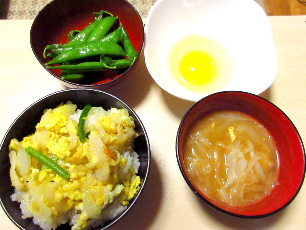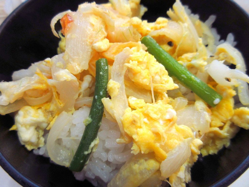 どんぶり風にご飯にのせました。卵の黄色がとても美しいのです。
