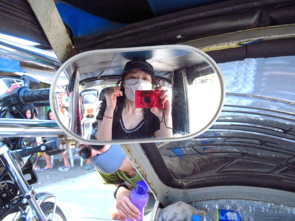 トゥクトゥクはのったことあるけど、横に座るタイプのバイタクは初めて。