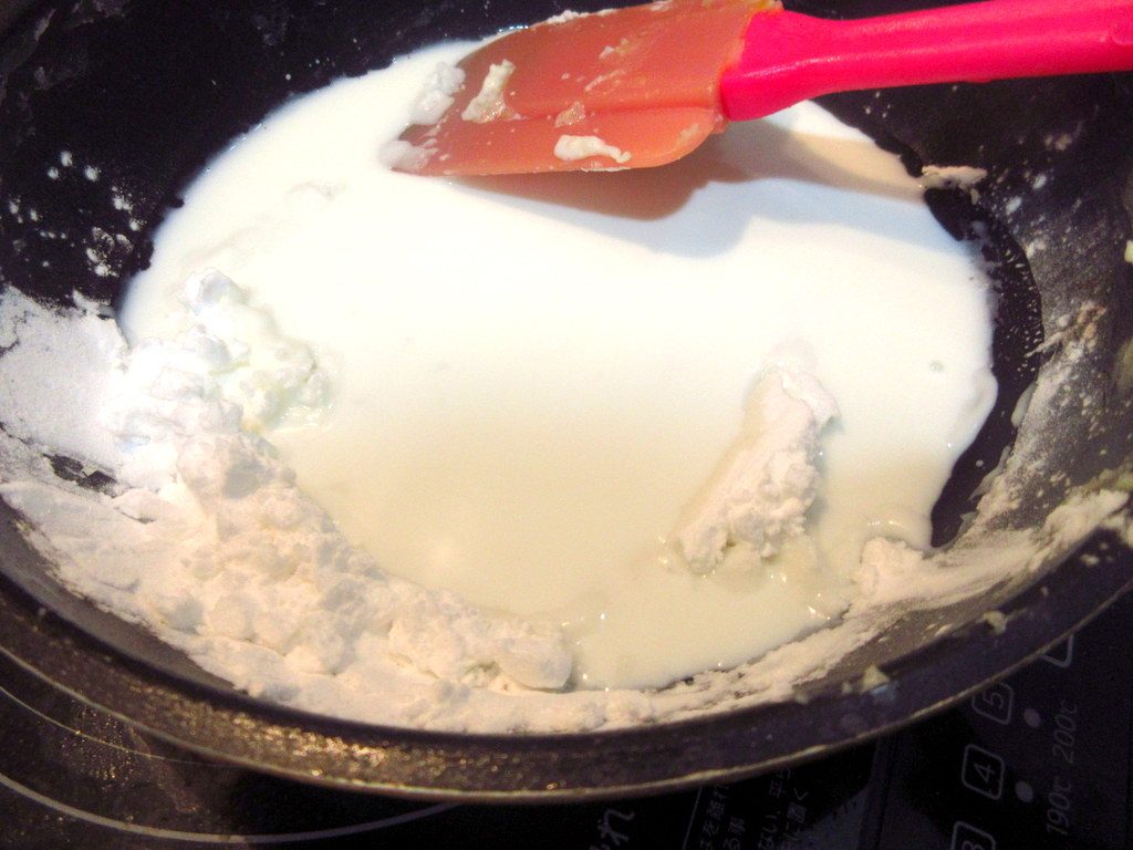 普通は生クリームを使うのですが、今回は牛乳をホワイトソースにして入れています。
