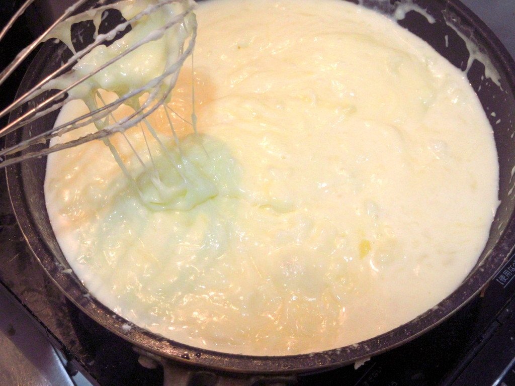 ふつふつしてきたら数分間泡立て器で混ぜながら、