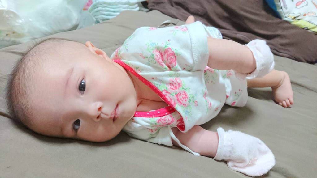 また、うつ伏せにすると必死で頭を持ち上げて頑張ろうとする姿が萌えます。