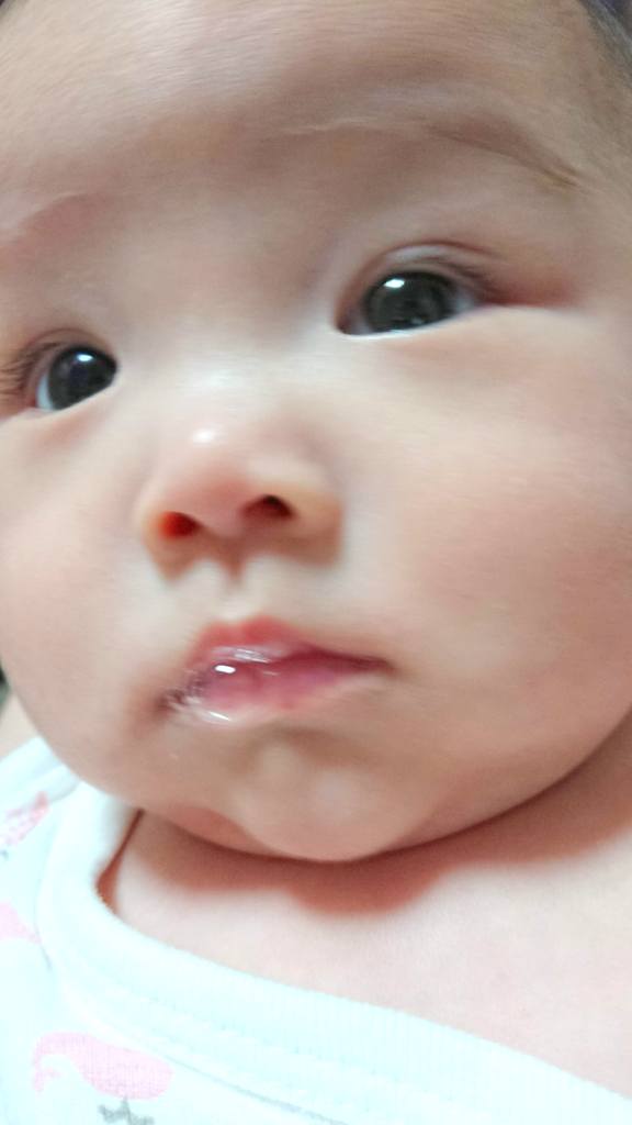 抱っこすると、シャボン玉のように唾をぷくっと膨らませたり、