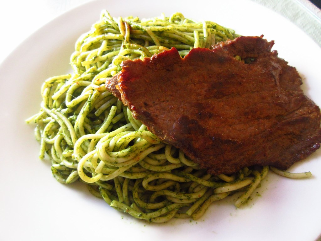 パスタの上にはよく、牛肉のステーキが乗っているのも特徴です。