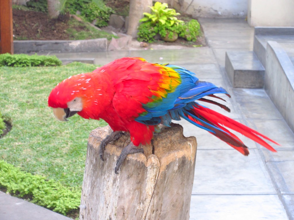 私が、通り過ぎると、そのオウムに突然「オラ!!」(スペイン語のハロー)と