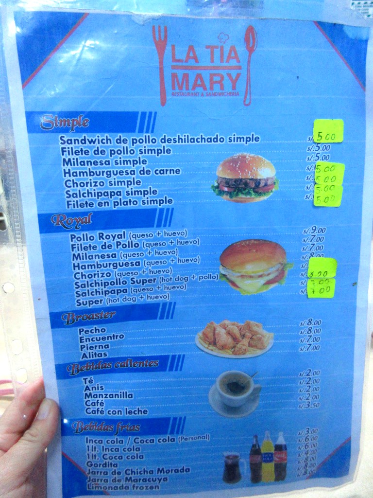 お値段は5ソル(160円)と、これまた非常に安いお値段です。