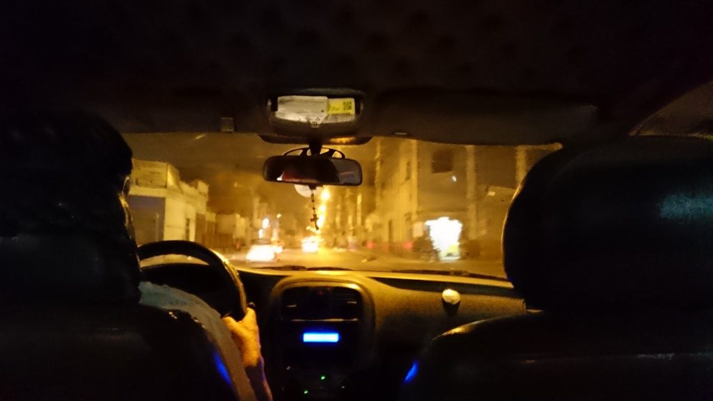 空港から乗るタクシーは ぼったくり だと言われているので、私は友人の情報をもとに 少し 空港の 外を歩いて流しのタクシーを捕まえようとした。