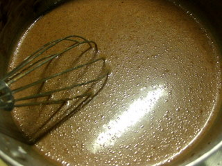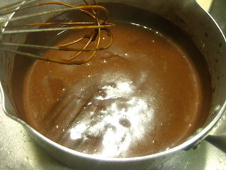 鍋で加熱し、絶えず泡だて器で混ぜながら、沸騰させ2分加熱します