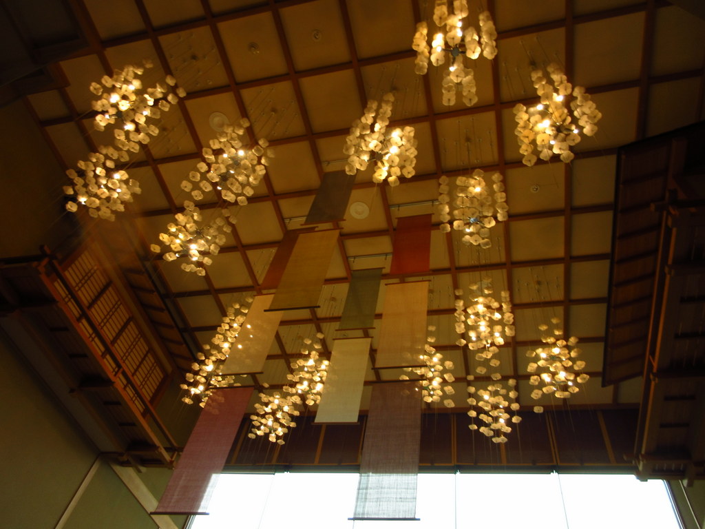 天井には、このように和を感じさせる照明がぶら下がっております。