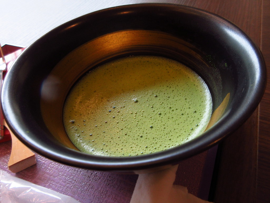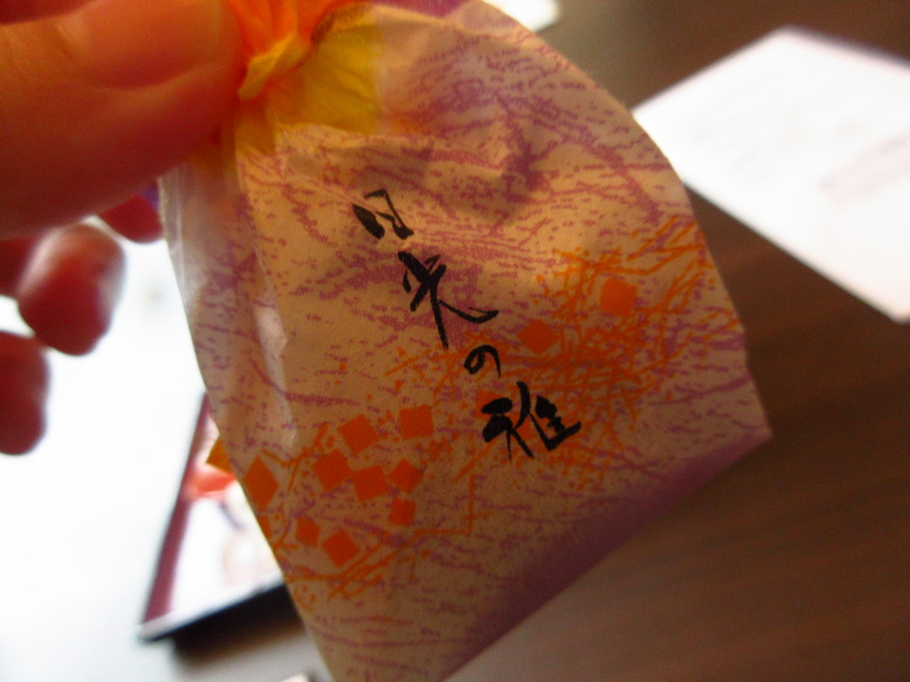 チェックインの時に抹茶と日光の雅という和菓子のサービスが