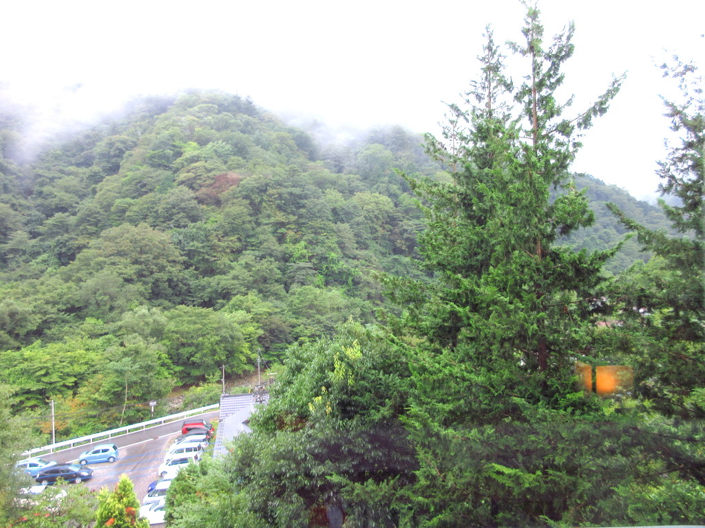 窓の外には山が見えますが、雨でちょっと上の方には靄がかかっていました。