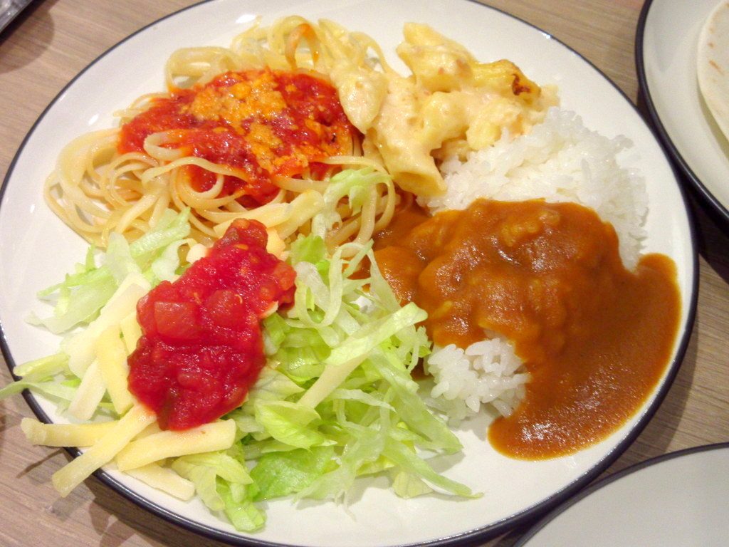 サラダバーですが、パスタやカレー、パンやデザートまでありました!