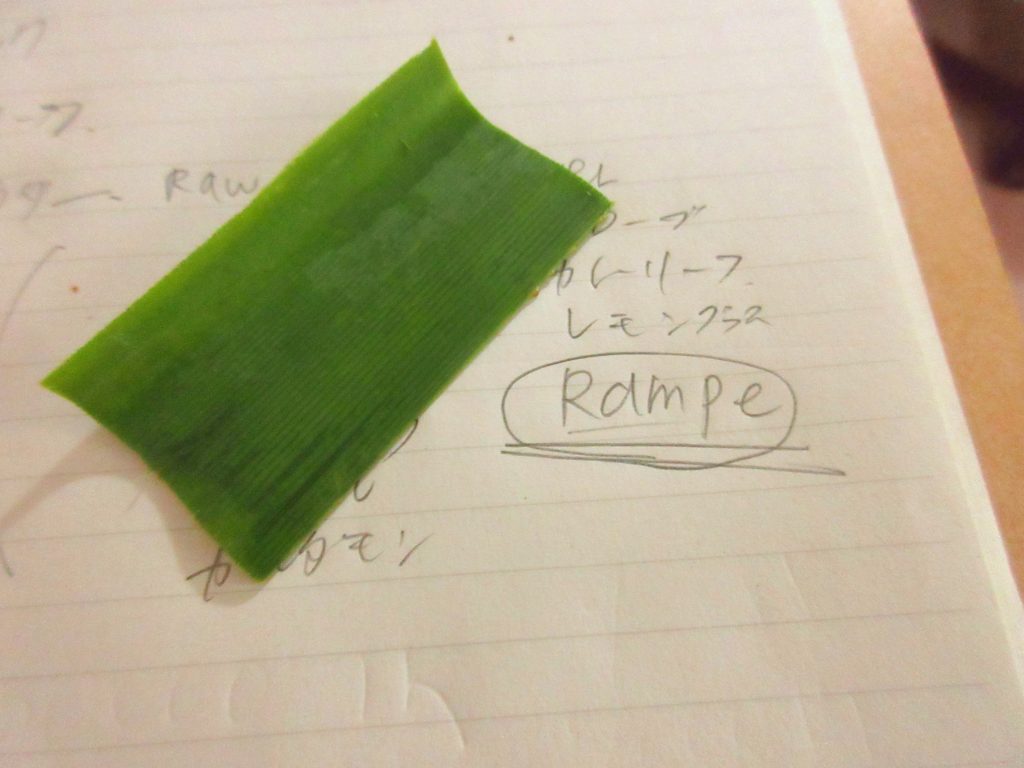 ↑現地で見せてもらったランペ入りカレー粉&生ランペ。