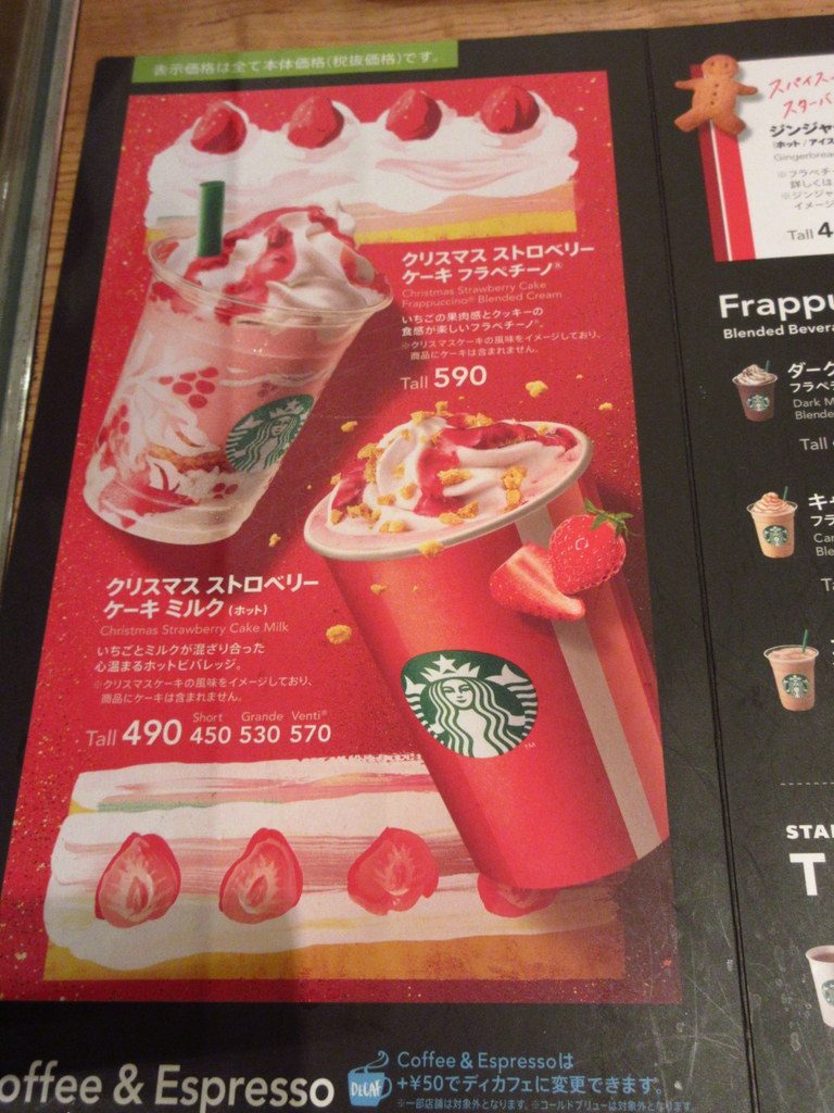 「クリスマスストロベリーケーキフラペチーノ」と、