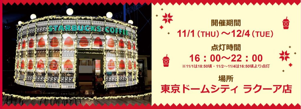 スタバのイルミネーションが可愛い!クリスマスケーキライトアップの点灯期間は?