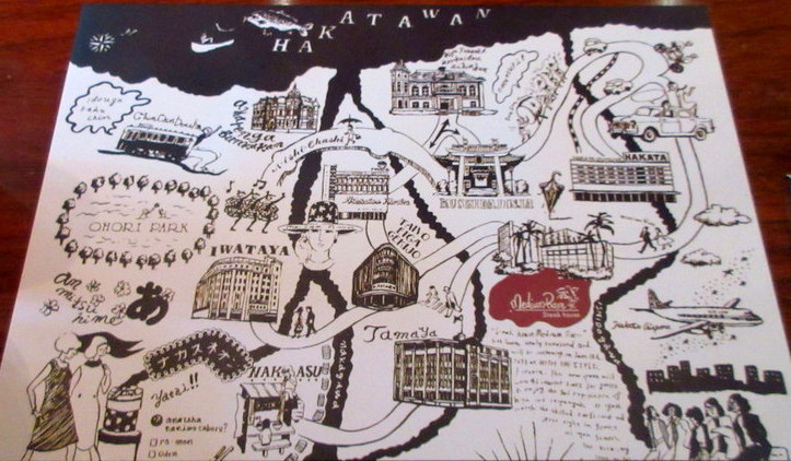 テーブルにつくと、博多のユニークな絵が描かれた紙がありました。