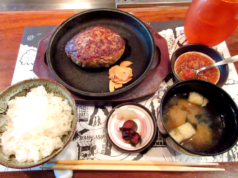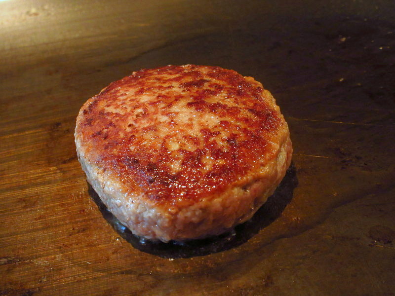 私はハンバーグ定食を注文。こちらも目の前で焼いてくれます。