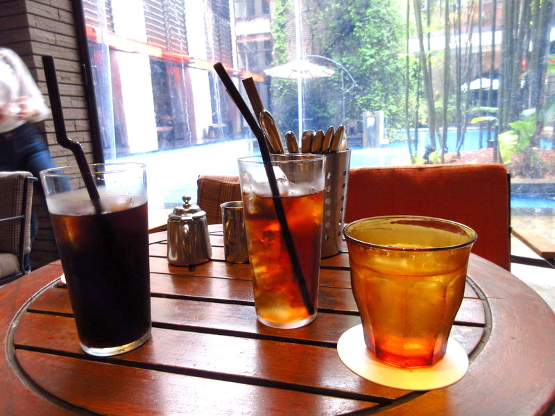 ランチについているドリンクは、カフェのテラス席でいただくことができるので、