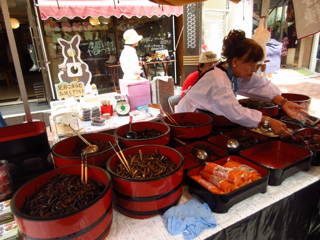漢方薬局の前にはマムシを目の前で製粉する実演販売(!)があったり、