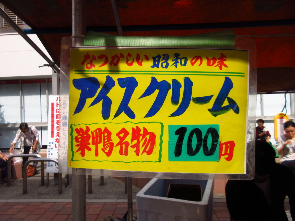 巣鴨名物のアイスクリームや、幸福だんごは1つ100円です。