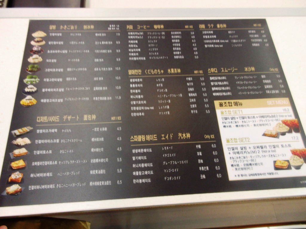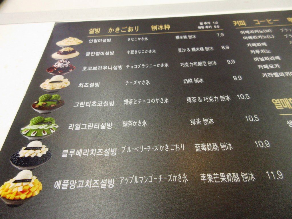 ソルビン(SULBING)釜山のメニュー・値段は?