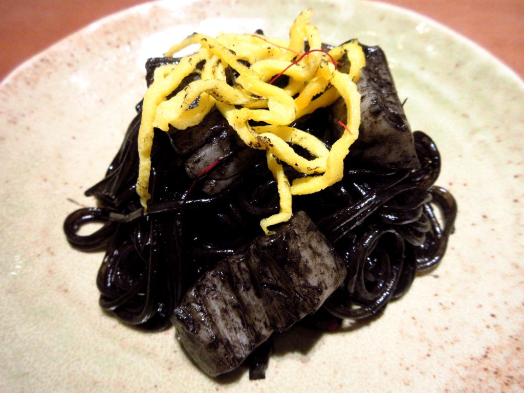 これも珍しいチャプチェです。イカとイカ墨で作られています。