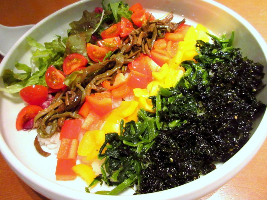 岩ノリや青菜、パプリカやトマト、レタスなどがたっぷりで、お口直しにGOOD✨