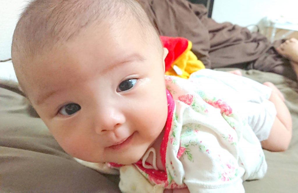 最近は、うつ伏せがお気に入り!仰向けにしても、一瞬でひっくりかえってます。笑