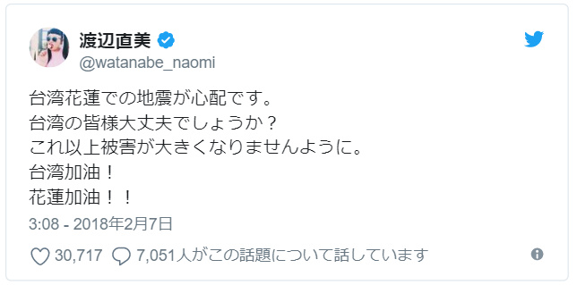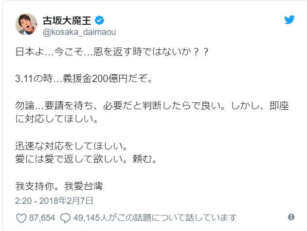 また、著名人からも、沢山の台湾に関するツイートが見られました。