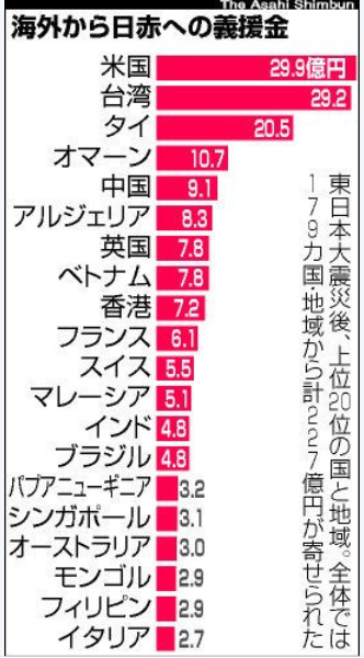 ↓ 以下は、東日本大震災のときに、海外から頂いた募金額です。