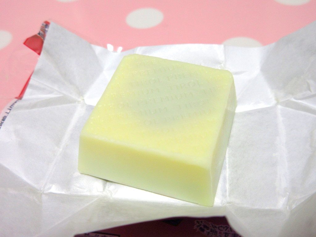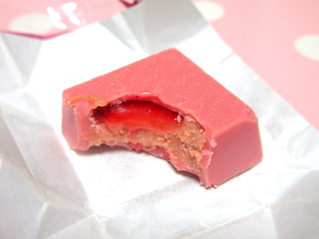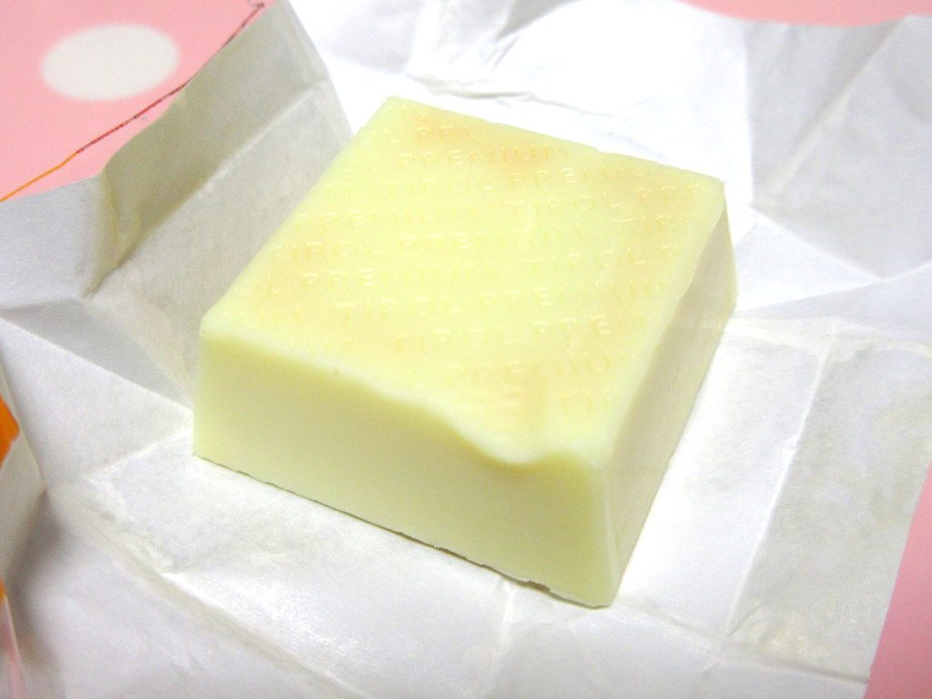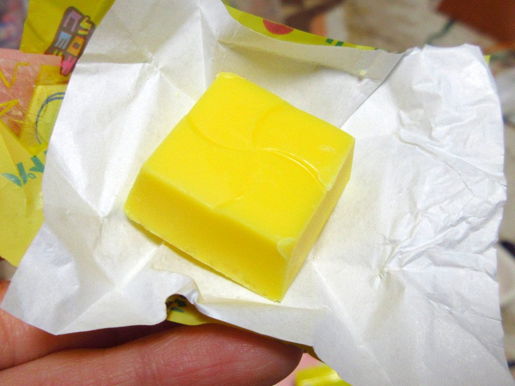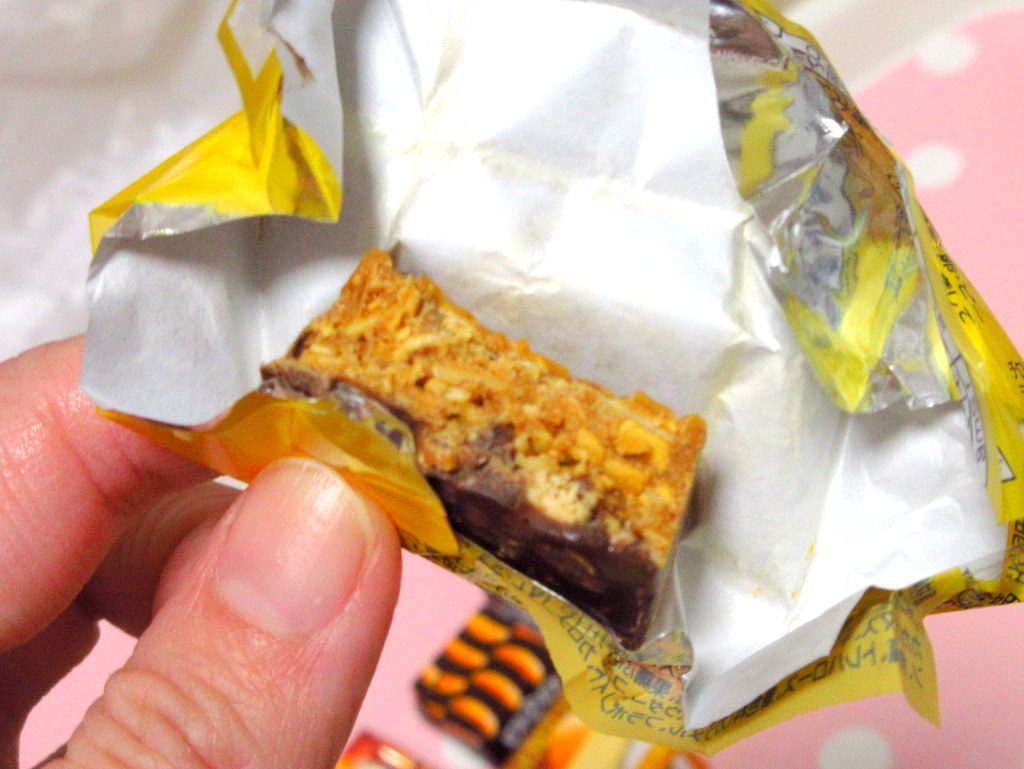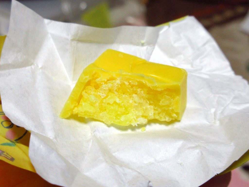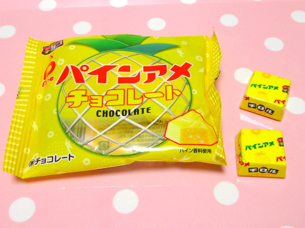 黄色いパイン風味のチョコレートの中には、本物のパインアメが入っています。