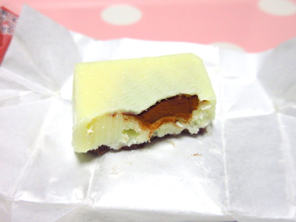 中にはココアパウダーの層とチーズの生チョコが入っています。