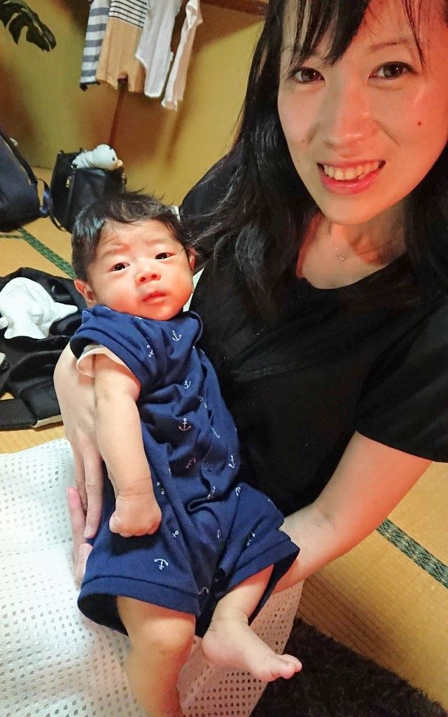 奥さんのあやみちゃんと、ちょうど 生後2ヶ月の青くんとご対面!